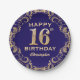 16th Birthday Party Navy Blue and Gold Glitter Paper Plate