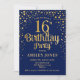 16th Birthday Party - Navy & Gold Invitation