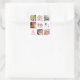 A sticker for a girly 16th birthday party, celebrating her life with a collage of 8 of your photos. Templates for a name, age 16 and a date. Date of birth or the date of the party. Coral and burgundy coloured letters. White background.