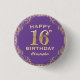 16th Birthday Party Purple and Gold Glitter Frame Button. For further customisation, please click the "Customise it" button and use our design tool to modify this template.