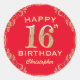 16th Birthday Party Red and Gold Glitter Frame Classic Round Sticker