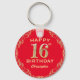 16th Birthday Party Red and Gold Glitter Frame Keychain. For further customisation, please click the "Customise it" button and use our design tool to modify this template.