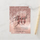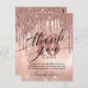 Modern 16th birthday party thank you postcard. Design features rose gold faux glitter & foil background with sparkly glitter drops and typography script ''thank you'' on the front and sweet 16 on the back. Personalise with your thank you message, date and a name.