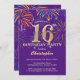16th Birthday Purple and Gold Rainbow Fireworks Invitation