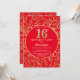 16th Birthday Red and Gold Floral Pattern Invitation