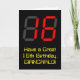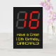 The front of this fun and geeky birthday-themed greeting card design features a large number "16" having a red seven segment digital display inspired appearance, along with the message "Have a Great 16th Birthday," and a personalized name, on a black colored background. The inside features a personalized birthday greeting message, or could perhaps be cleared and left blank if a message is to be written by hand instead. A custom birthday card like this might be a fun way to send birthday wishes to somebody who is celebrating their sixteenth birthday. [~Z0000386]