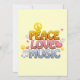 Sixteenth Birthday invitation card with image of a guitar and the word rock in colourful letters, you can change everything on the invitation to suit your party. The back has peace, love, music that can also be changed.