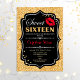 16th Birthday - Sweet Sixteen Gold Black Red Invitation