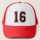 Classic Red & Black 16th Birthday Party Trucker Hat celebrates someone who is turning 16 years old