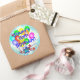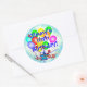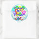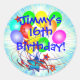 A bright, fun colourful balloon bouquet and bursting stars on another background layer of blue and white gradient burst graphic ready for you to personalise with any name and any birthday age. Insert your information with any "Name's 16th, (or easily change the age) Birthday!" Great special occasion fun and colourful custom stickers, party favours, or envelope seals! Shown is the popular round sticker. Great for the big sweet 16th birthday or for babies, kids, teens, and men and women of any age!