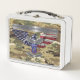 This is a standard metal lunchbox that appears to work just fine. We designed this box ourselves with an uploaded photo and custom text on the front and back. It looks absolutely beautiful except the front of the lunchbox is not centered like it shows in the photo. The print borders don't align with the inset flat part of the box where the preview photo online showed it perfectly centered in there. The back looks nice and centered though.