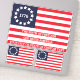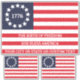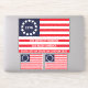 Your optional text will create a one of a kind personalised Betsy Ross Flag contour vinyl sticker in this original 1776 flag design. All text in this red, white and blue design can be modified or removed, giving you the options to make the perfect Betsy Ross die-cut sticker. Two smaller flag stickers are included as a bonus to this patriotic flag sticker sheet. Show off your patriotic spirit with America's first flag to stick wherever you want.