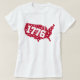 This fun red and white unisex t-shirt has patriotic white stars on a red map of the United States. On top of the country is the year 1776. It’s a great design for the 4th of July!