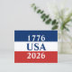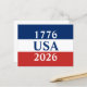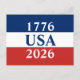 1776 USA 2026 Red White and Blue Patriotic Postcard