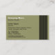 A Business card template with a simple clear dern layout decorated on the right edge with a tif made up of seventeen vertical strait lines which balances the text. The reverse side of the card has the same decorative tif but the text area has been left blank. This can be left as it is to use as a handy area for notes etc or customised with additional text. The decorations can also be cleared or replaced. You can also add additional graphics e.g. a logo. The text and background colours can also be customised. This template is also available in a variety of other colour combinations. Suitable and can be adapted for st businesses.