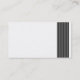 A Business card template with a simple clear dern layout decorated on the right edge with a tif made up of seventeen vertical strait lines which balances the text. The reverse side of the card has the same decorative tif but the text area has been left blank. This can be left as it is to use as a handy area for notes etc or customised with additional text. The decorations can also be cleared or replaced. You can also add additional graphics e.g. a logo. The text and background colours can also be customised. This template is also available in a variety of other colour combinations. Suitable and can be adapted for st businesses.