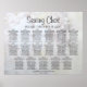 Make your wedding reception beautiful with this seating chart. Designed as a part of our White Reflections Wedding Suite, it features black text over a background of reflecting white flowers and hearts. This chart shows table assignments so your guests will have an easy time finding the right table.