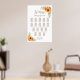 This yellow and pink floral seating chart will help your guests find their table. It is suitable for a wedding with 17 tables and up to 170 guests.