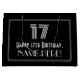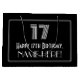 This Roaring Twenties look inspired vintage style birthday-themed giftbag design features a large art deco look inspired number "17", the message "Happy 17th Birthday,", a personalised name, and a border pattern consisting of thin lines. The background is coloured black. A birthday themed gift bag like this could be used to wrap a gift or present being given to celebrate somebody’s 17th birthday. [~Z0000497]