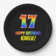 17th Birthday: Bold, Fun, Simple, Rainbow 17 Paper Plate