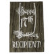 This ornate and elaborate birthday-themed giftbag design features the message “Happy 17th Birthday,” in fancy script style text, on a faux wood look pattern background. It also features a personalised recipient name. A gift bag like this might be used when wrapping gifts being given to somebody in celebration of their 17th birthday. [~Z0000558]