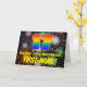 The front of this bold and cheerful birthday-themed greeting card design features a large number “17” having a multicolored rainbow spectrum inspired gradient pattern. It also features the message “HAPPY 17th BIRTHDAY,”, and a personalised recipient name. The background of the front features an exciting, colourful pattern that resembles bursting celebratory fireworks. The inside features a custom birthday greeting message, or could perhaps be cleared and left blank if a message is to be written by hand instead. A colourful, customisable birthday greeting card like this might be a fun way to deliver a birthday greeting message to somebody who is celebrating their seventeenth birthday. [~Z0000619]