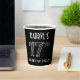 This stylish Roaring Twenties era inspired art deco look birthday-themed paper cup design has a custom name, plus the message “17TH BIRTHDAY PARTY!”. The number “17TH” has a fancy geometric lined styling. Paper cups like these might be used at a birthday party held in celebration of somebody’s seventeenth birthday, or some other 17th event. [~Z0000658]