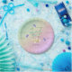 A celebration rainbow of colours, pink flowers and lavender butterflies are featured on these pretty paper plates for a girl's 17th birthday party.