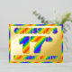 The front of this exciting seventeenth birthday celebration foil invitation card features a personalised name, a large number “17th”, the message “BIRTHDAY PARTY!”, and a border, all featuring a vibrant, colourful, rainbow spectrum inspired gradient pattern. The back features personalised details about the event, such as the date, time, location/venue, and any other information that may be important. Fun, joyful, personalised invitations like these might be used to invite guests to a birthday party being held to celebrate somebody’s 17th birthday. [~Z0000593]
