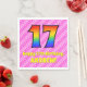 17th Birthday: Pink Stripes & Hearts, Rainbow # 17 Napkin