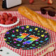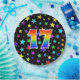 This fun, cheerful, and colourful paper plate design features a large number "17" coloured with a rainbow spectrum gradient inspired pattern. The background features a colourful star shapes pattern. Fun paper plates like this might be used at somebody’s seventeenth birthday party, or a couple’s 17th anniversary celebration, or some other seventeenth event. [~Z0000493]