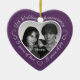 Celebrate a 17th happy year of marriage with a custom photo ornament in a delightful heart shape frame. Simply upload your own photo of the married couple and it will appear in the cutout. The purple surround features a white script font and decorations. The words are: 17th Wedding Anniversary - 17 years of love - 17 years of joy. On the back you can personalise this keepsake with your own message and can also add the year or a full date if you prefer. Note: if you like the seventeen year anniversary ornament but have your heart set on a different colour, please contact me.