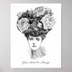 An Old 1800s Black and White Line Drawing of a Woman In a Floral Hat. This Vintage Art Makes Great Wall Decor, Bedroom Decor, Wedding Gift, or a Gift For a Girl. Personalise with your Name or Message.