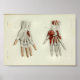 Vintage 1844 anatomical print illustration. Muscles of the hand and wrist
