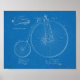 1885 Vintage high wheeler or Penny farthing bicycle US patent technical design illustration. Lever propelled with close up of seat saddle.