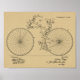 1888 Vintage bicycle US patent technical design illustration. Chain driven bike with frame suspension.