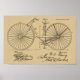 1890 Vintage bicycle US patent technical design illustration. Chain driven large wheeled bike with adjustable seat height and hand brakes.