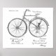 1890 Vintage bicycle US patent technical design illustration. With pedals attached to rear wheel.