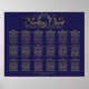 This beautiful wedding seating chart is simple, sophisticated and chic. Featuring gold lettering and a faux foil vintage flourish on a navy blue background, it has seating assignments for 18 tables making it easy for your guests to find their tables at your reception.