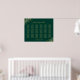 This seating chart will help your guests find their assigned tables at your wedding reception. It features a simple yet elegant design with gold text on an emerald green background. The title is written in beautiful script calligraphy lettering and reads: please find your table. The design features a lacy floral faux foil gold filigree in the corners. Contains seating assignments for 18 tables at 10 guests per table or 180 guests.