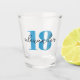 Personalised 18th birthday shot glass with blue age text and modern script name. Colours and fonts can be changed if required.
