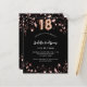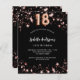 A classic black background, decorated with rose gold stars. Personalise and add a name and party details. Number 18 is written with a balloon style script.