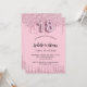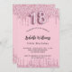 A modern, stylish and glamourous invitation for a girl's 18th birthday party. A blush pink background with faux glitter drip, paint dripping look. The name is written with a modern hand lettered style script. Personalise and add your party details. Number 18 is written with a balloon style font, script.