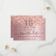 A girly and trendy Save the Date for a 18th birthday party. Blush pink gradient background decorated with rose faux glitter dust. Personalise and add a date and name/text. The text: Save the Date is written with a large trendy hand lettered style script with swashes. Number 18 with a balloon style font.