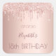 18th birthday blush rose gold glitter drips name square sticker