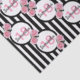 Classic slim black and white vertical stripes as background. With girly, feminine and romantic pink roses as decoration. Perfect for an elegant 18th birthday party for her. White and black frames with templates for name and age. Age number 18 in pink, name and date in black. The name is written with a hand-lettered style script.