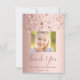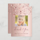 A thank you card for a 18th birthday. A rose gold faux metallic looking background colour. With rose gold dripping shining stars. On front large dark rose gold coloured hand lettered script and the text: Thank You, your text, title and a date. Personalise and add your own photo.