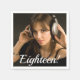 Template for own Your photo. White text overlay: Eighteen!. Written with a modern hand lettered style script. A napkin for a 18th birthday party.