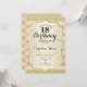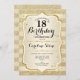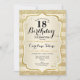 18th Birthday Invitation. Elegant design in gold. Features faux glitter gold stripes, stylish script font and confetti. Perfect for a glam birthday party.