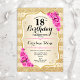 18th Birthday - Gold Stripes Pink Roses Invitation